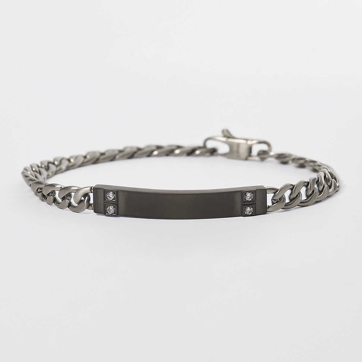 Bracciale Da Uomo Di 2Jewels Della Collezione Herby. Bracciale In Acciaio 316L Con Catena Groumette Larghezza 6 Mm, Piastra 40X6.40 Mm Con Pvd Gun Metal E Zirconi Bianchi Ø 2 Mm. Lunghezza Cm 21. La Referenza È 232330