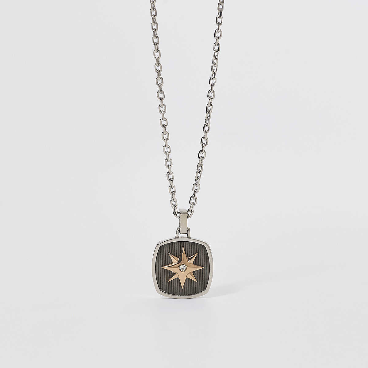 Collana Da Uomo Di 2Jewels Della Collezione Navy. Collana In Acciaio 316L Con Catena Forzatina Larghezza 2.10 Mm, Ciondolo Rosa Dei Venti 16.50X16.50 Mm Con Pvd Rosé E Gun Metal E Cristalli Bianchi Ø 1.75 Mm. Lunghezza Cm 50. La Referenza È 251812