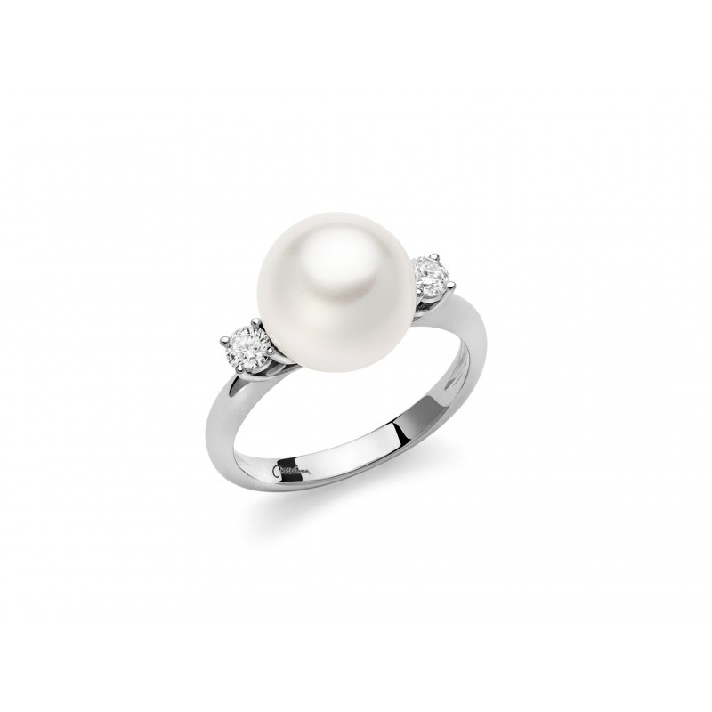 Anello con perla in oro bianco 18KT, anello della collezione Classic Line Davite&Delucchi.