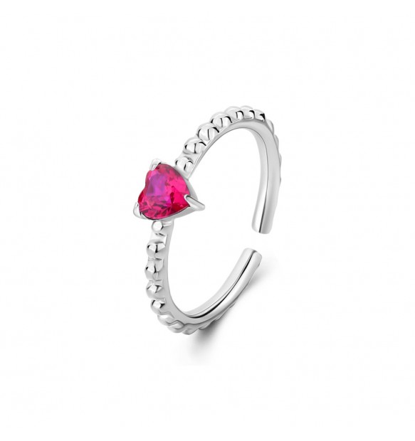 Anello da donna realizzato in acciaio anallergico 316L rodiato con cristallo rosso taglio a cuore centrale