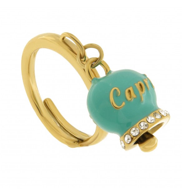 Anello in acciaio dorato con campanella tiffany Amo Capri