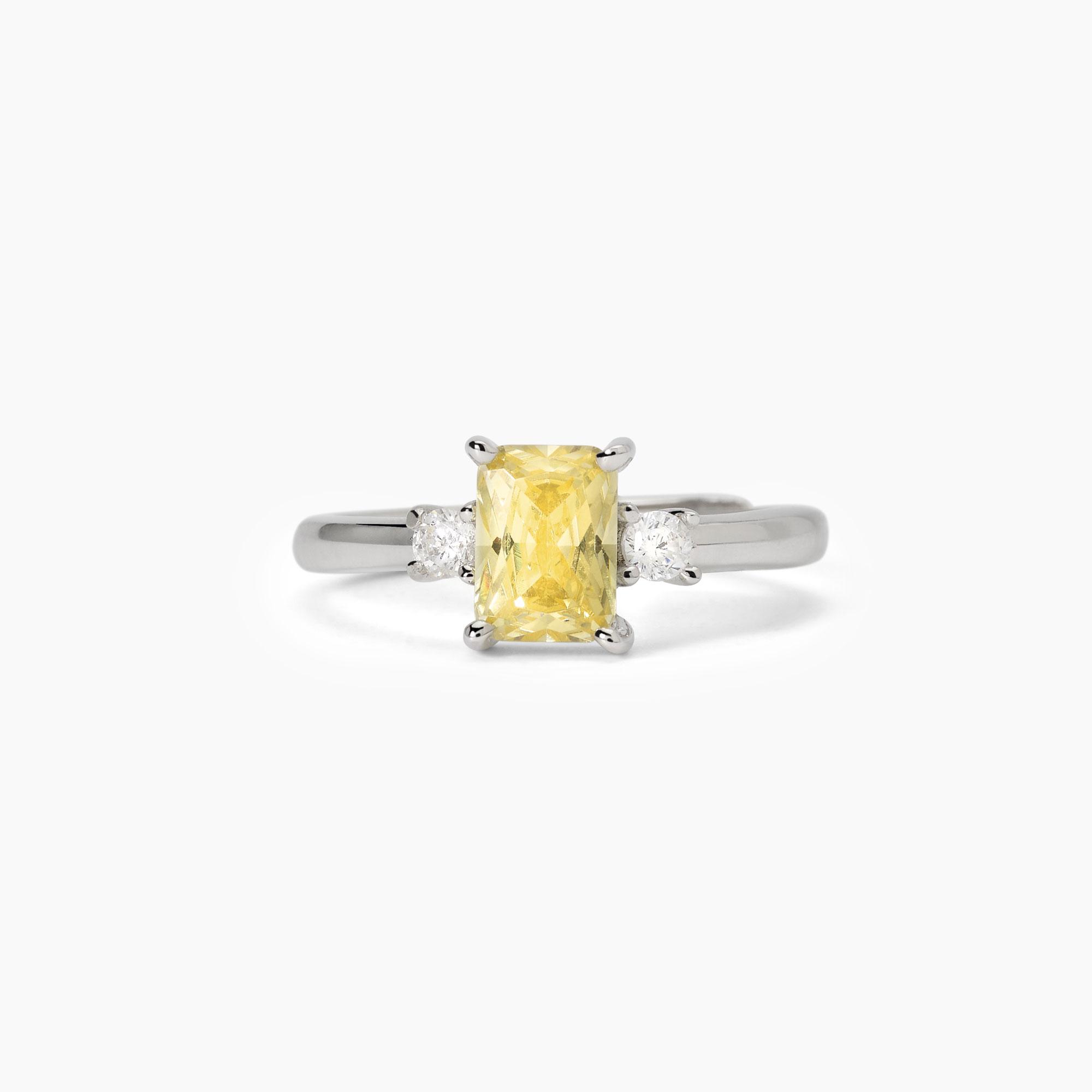 Anello da donna regolabile in argento rodiato con zircone Lemon taglio princess e zirconi bianchi.