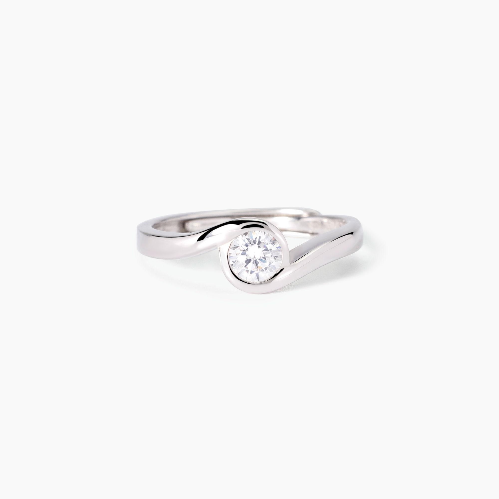 Anello regolabile da donna in argento rodiato con zircone.