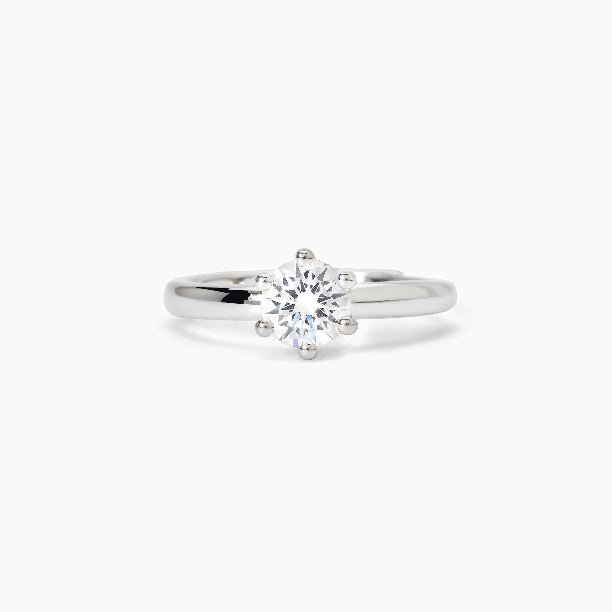Anello da donna solitario regolabile in argento rodiato con zircone.