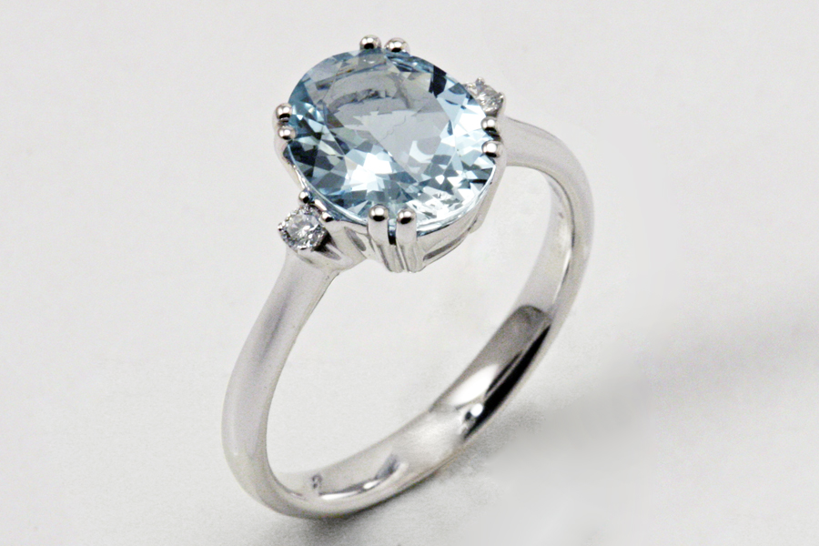 Anello con acquamarina in oro bianco 18KT, anello della collezione Classic Line Davite&Delucchi.