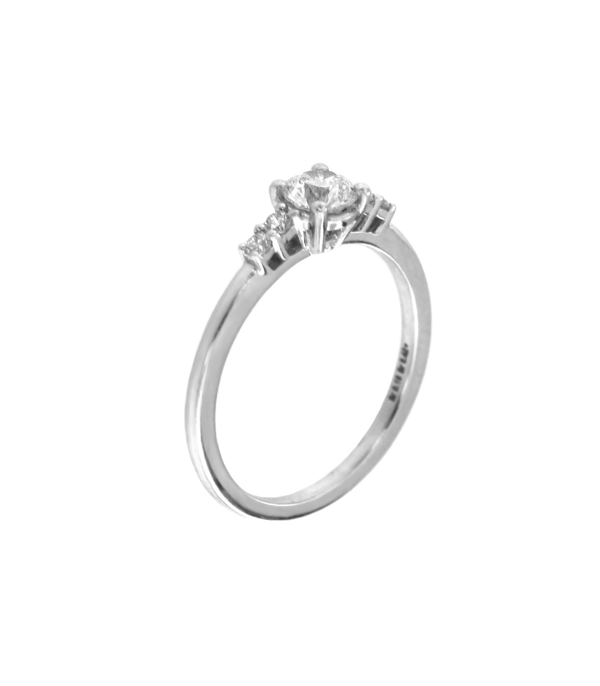 Anello solitario con diamanti laterali in oro bianco 18KT, anello della collezione Classic Line Davite&Delucchi.