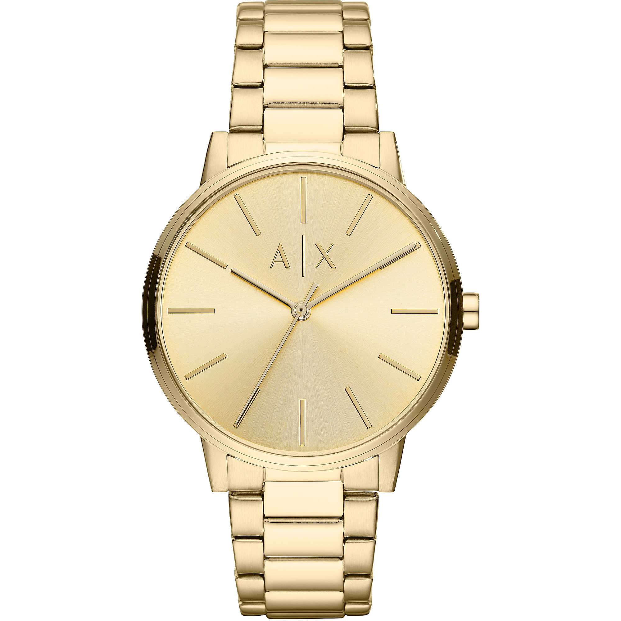 Orologio Solo Tempo Da Uomo Di Armani Exchange. Orologio Con Cassa Rotonda In Acciaio Inossidabile Di Colore Gold Con Finitura Mista. Misura Della Cassa Di 42 Mm E Spessore Di 8 Mm. Ghiera In Acciaio Inossidabile Di Colore Gold Con Finitura Lucida. Vetro Trasparente E Quadrante Gold. Bracciale In Acciaio Inossidabile Di Colore Gold Con Finitura Mista E Chiusura Deployante. Distanza Delle Anse: 20 Mm. Resistenza All’Acqua Di 5 Atm. Movimento Al Quarzo. Funzioni: 3 Sfere. La Referenza È Ax2707
