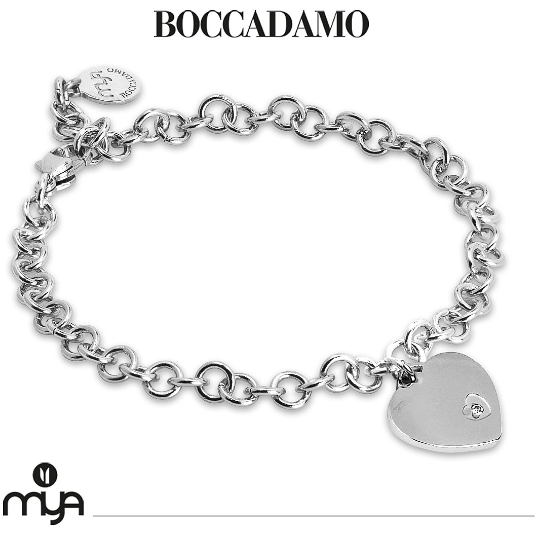 Bracciale da donna di Boccadamo della collezione piccoli tesori della linea mya. Bracciale rodiato dalla catena ovale, con cuore pendente e zircone bianco. Materiale: acciaio; misure: lunghezza da cm 16,5 a cm 19,5; dimensione: pendente cm 1×1,5; chiusura: con moschettone. La referenza è pi/br57