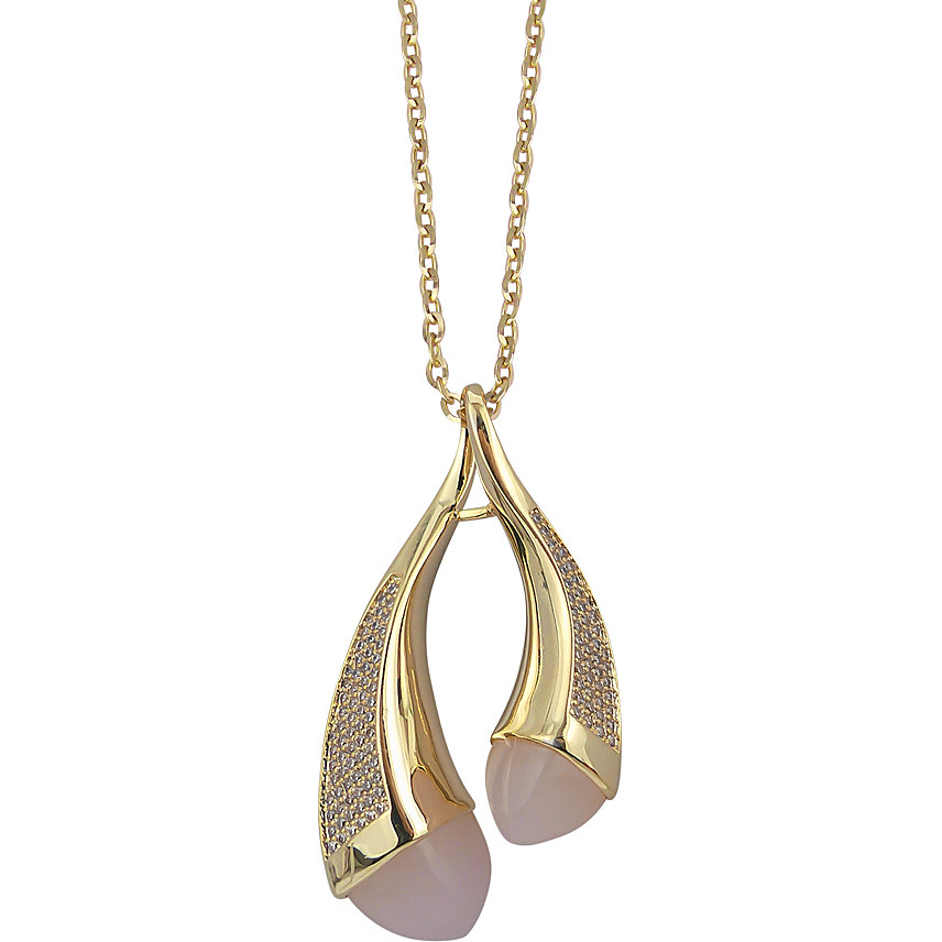 Collana da donna di Boccadamo della collezione Caleida della linea Mediterranea. Collana placcata oro rosa doppio filo con pendente composto da elementi a goccia e cristalli piramidali color quarzo rosa misura grande e pavè di zirconi. Materiale: bronzo. Produzione: realizzato in Italia. Misura: lunghezza cm 80. Dimensione: lunghezza pendente cm 5,7, cristalli piramidali mm 10. Chiusura: con moschettone. La referenza è KGR024DR