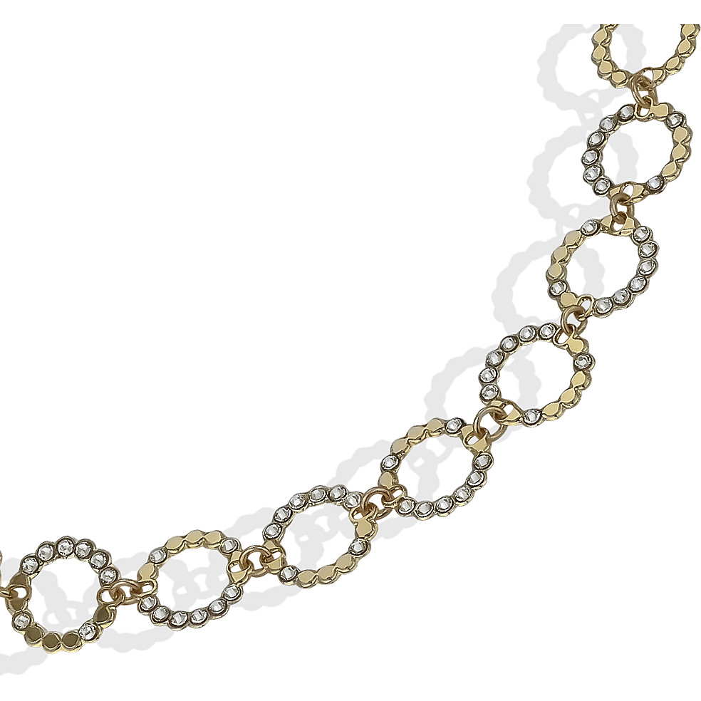 Collana Da Donna Di Boccadamo Della Collezione Magic Circle Della Linea Mediterranea. Collana In Bronzo Placcato Oro Giallo Composta Da Elementi Decorativi Circolari A Lastra Pallinata E Cristalli Crystal. Materiale: Bronzo. Produzione: Realizzato In Italia. Misura: Lunghezza Regolabile Da Cm 39 A Cm 44,5. Dimensione: Diametro Elementi Circolari Cm 1,8. Chiusura: Con Moschettone. La Referenza È Xgr630D
