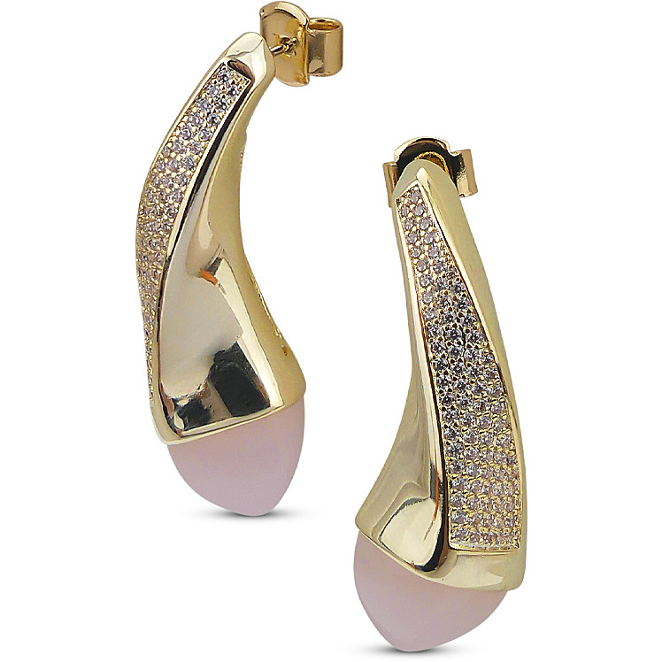 Orecchini da donna di Boccadamo della collezione Caleida della linea Mediterranea. Orecchini placcati oro rosa dal pendente a goccia con cristallo piramidale color quarzo rosa e pavè di zirconi. Materiale: bronzo. Produzione: realizzato in Italia. Misure: lunghezza cm 3,5. Dimensione: cristallo mm 10. Chiusura: a farfalla. La referenza è KOR026DR