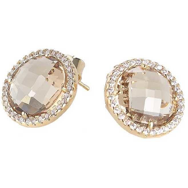 Orecchini da donna di Boccadamo della linea mediterranea della collezione sharada. Orecchini a lobo in bronzo placcato oro giallo con cristalli briolette champagne e zirconi. Diametro cm 1,5. La referenza è xor260d