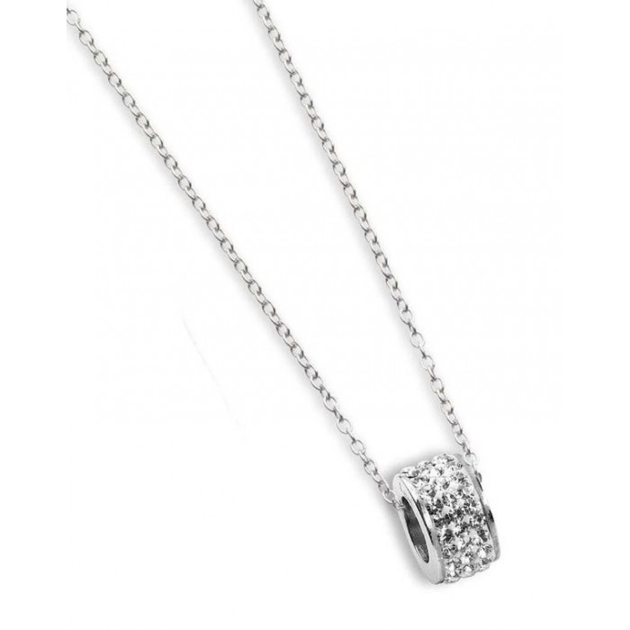 - Ciondolo Passante in Acciaio con Pavè Bianco