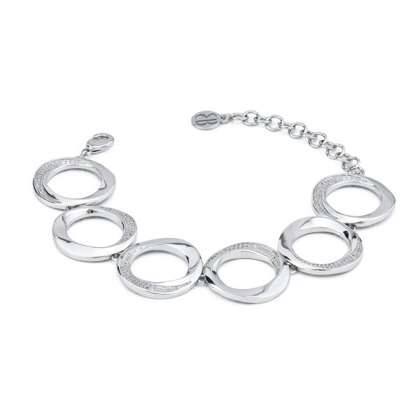 Bracciali da donna di Boccadamo della linea Mediterranea della collezione Caleida. Bracciale a moduli con pavé di zirconi. Materiale: bronzo. Produzione: realizzato in Italia. Misura: regolabile da cm 15 a cm 19,5. Dimensione: diametro modulo mm 22. Chiusura: a moschettone.