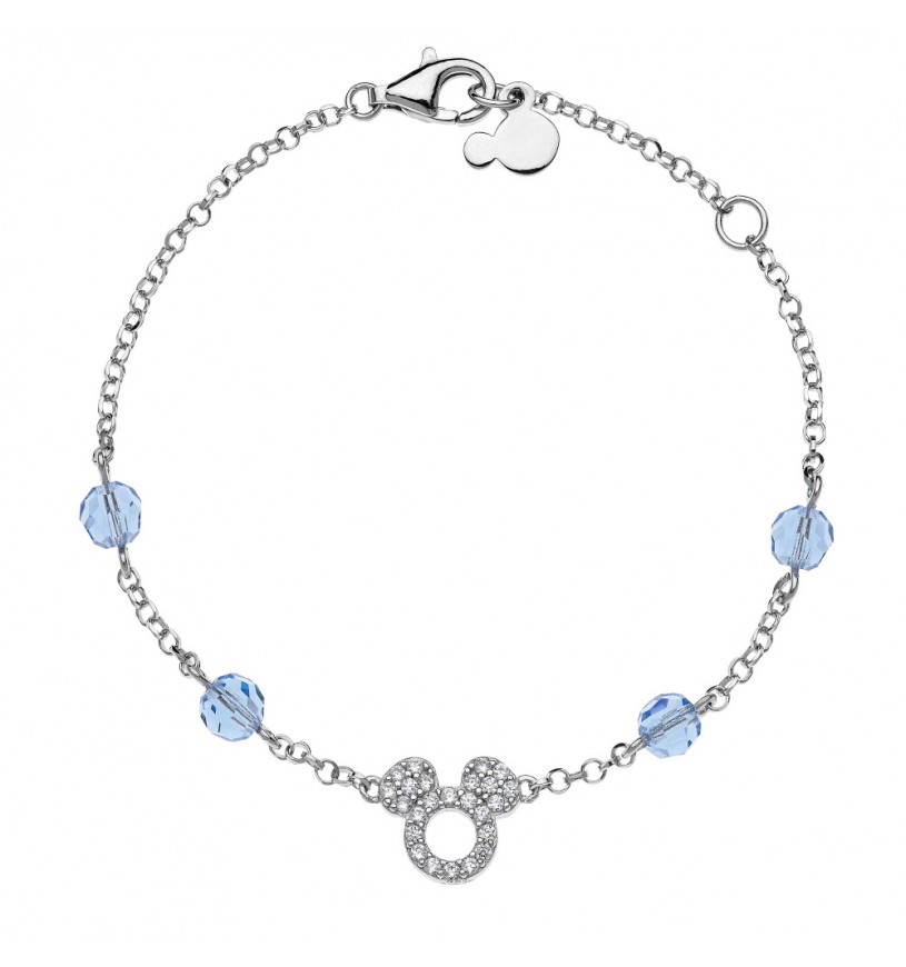Bracciale Bambina Disney BS00011RZWL-55.CS. Bracciale realizzato in argento 925 con volto di Mickey Mouse in pavè di zirconi e sfere trasparenti celesti. Lunghezza regolabile da 15 cm a 18 cm. Chiusura a moschettone. Il prodotto viene spedito con scatola originale e certificato autentico di garanzia valido per 24 mesi.