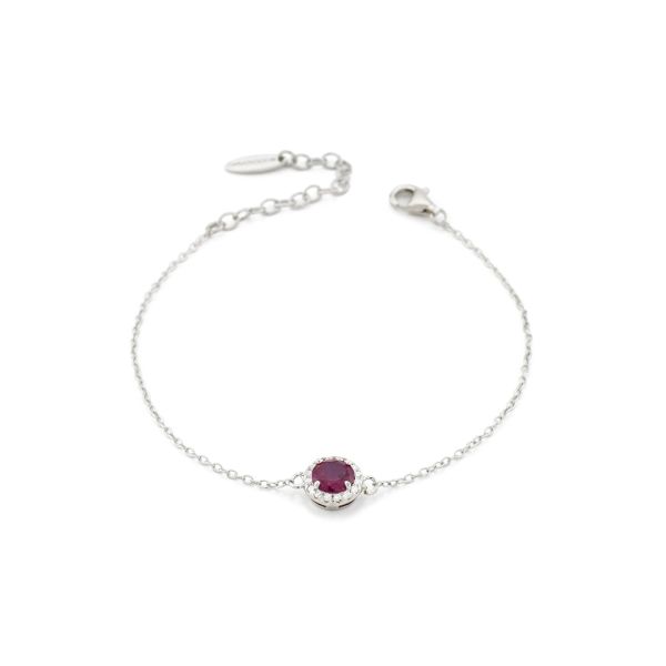 Bracciale placcato oro giallo con cristallo centrale di colore rubino circondato da zirconi bianchi.