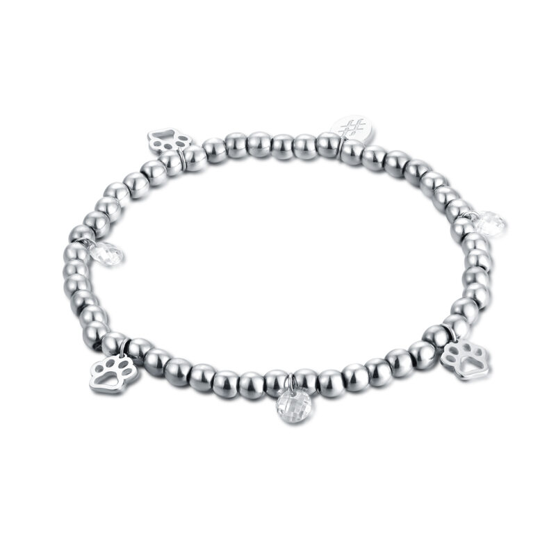 Bracciale elasticizzato a pallini con zampine e cristalli bianchi