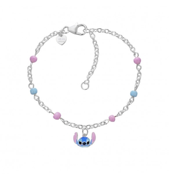 Braccialetto da bambina realizzato in argento 925%. Centrale a forma di Stitch con smalto.