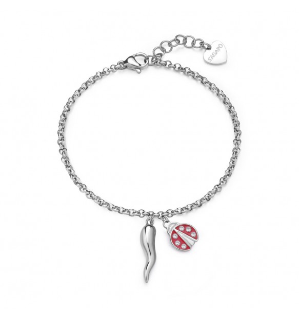 Braccialetto da donna realizzato in acciaio anallergico 316L con finitura rodiata.