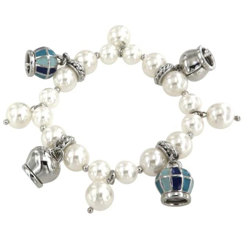 Bracciale in Metallo 3571011 elastico perle alternate a campane pendenti in stile mongolfiera colorazioni blu.Garanzia 24 mesi