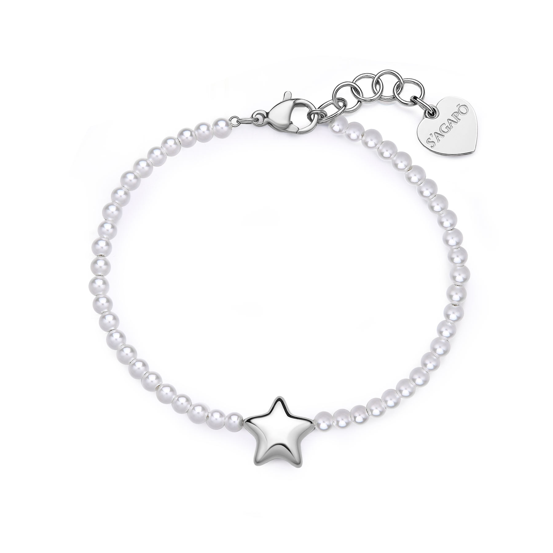 Bracciale realizzato in acciaio con perle e stella centrale.