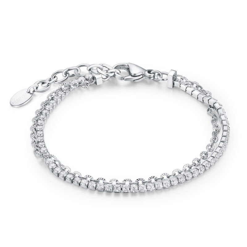 Bracciale tennis da 2mm con catena flower. Lunghezza bracciale 16 cm+3 cm di estensione. Realizzato in acciaio inossidabile, ipoallergenico e testato per il nichel.Bracciale con due anni di garanzia.