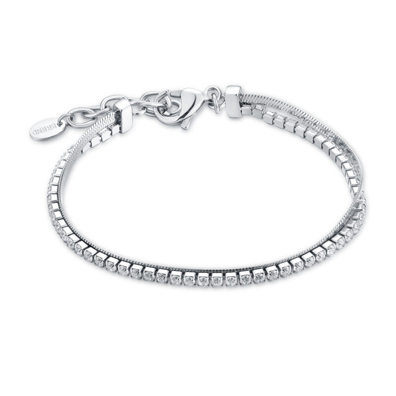 Bracciale tennis con zirconi bianchi con catena sickle, realizzato interamente in acciaio 316L, ipoallergenico e testato per il nichel. Ha una lunghezza di 16cm+3cm di estensione. Bracciale con due anni di garanzia ufficiale