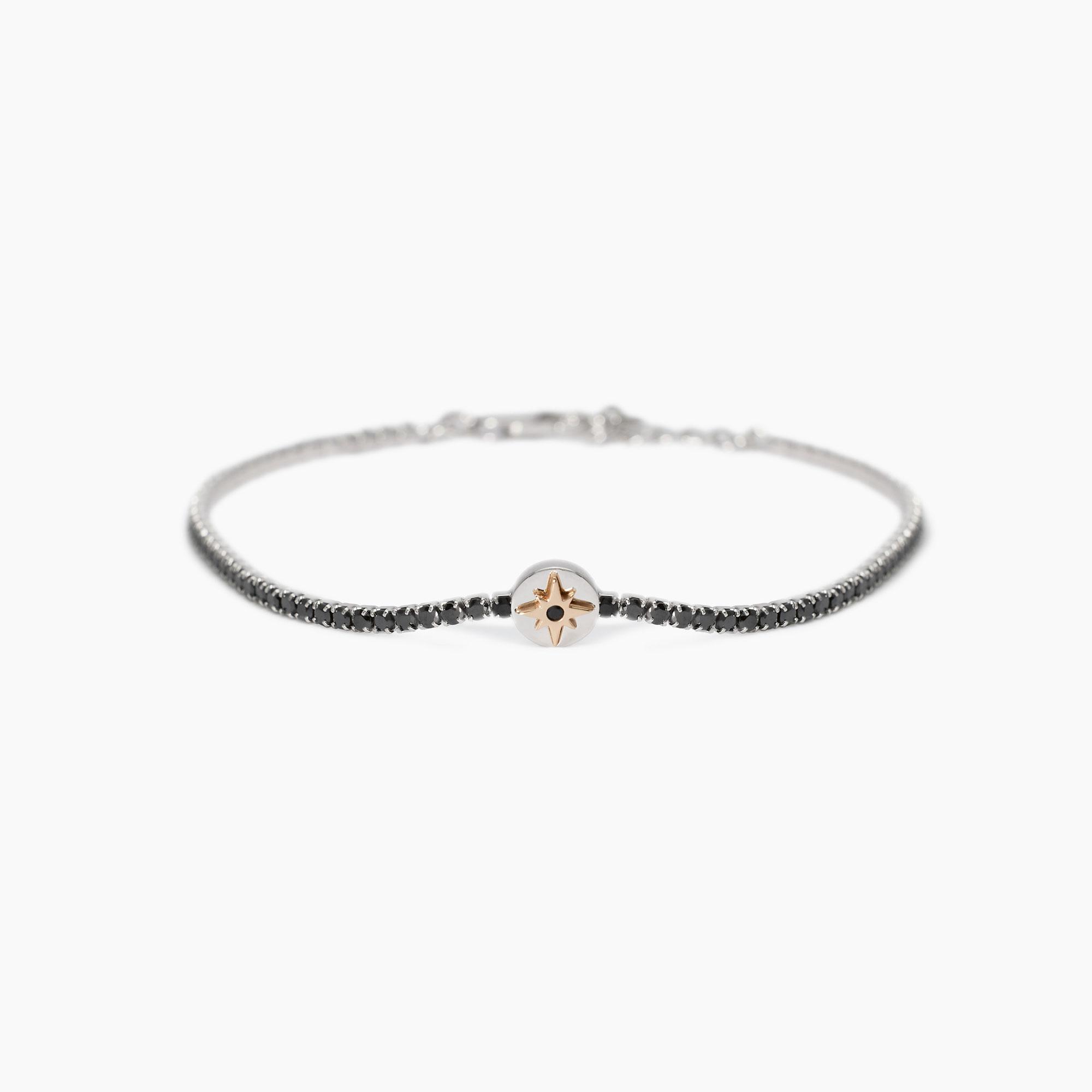 Bracciale in argento rodiato con tennis in zirconi e simbolo rosa dei venti in argento placcato oro rosa 18K.