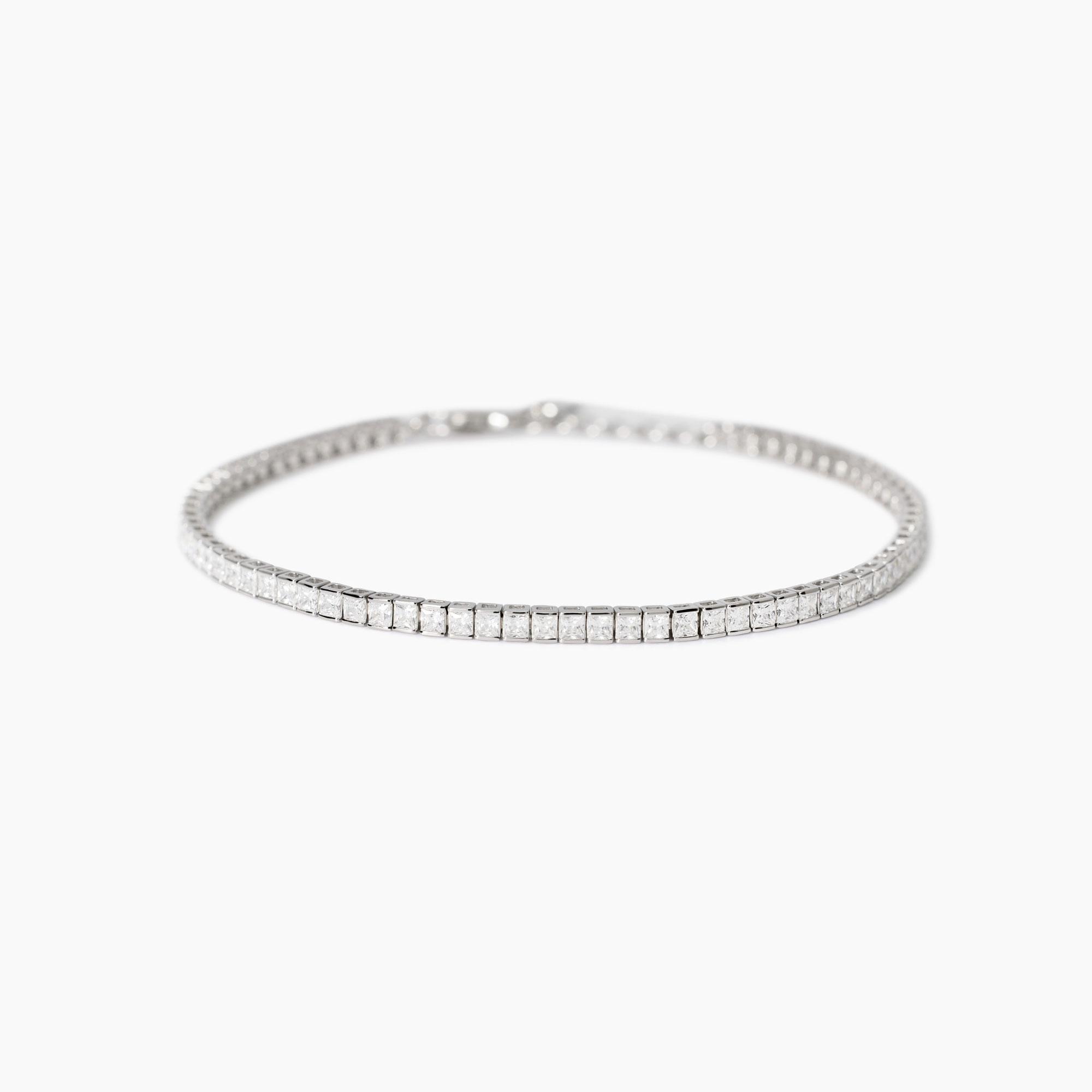 Bracciale tennis uomo in argento rodiato e zirconi bianchi taglio princess.