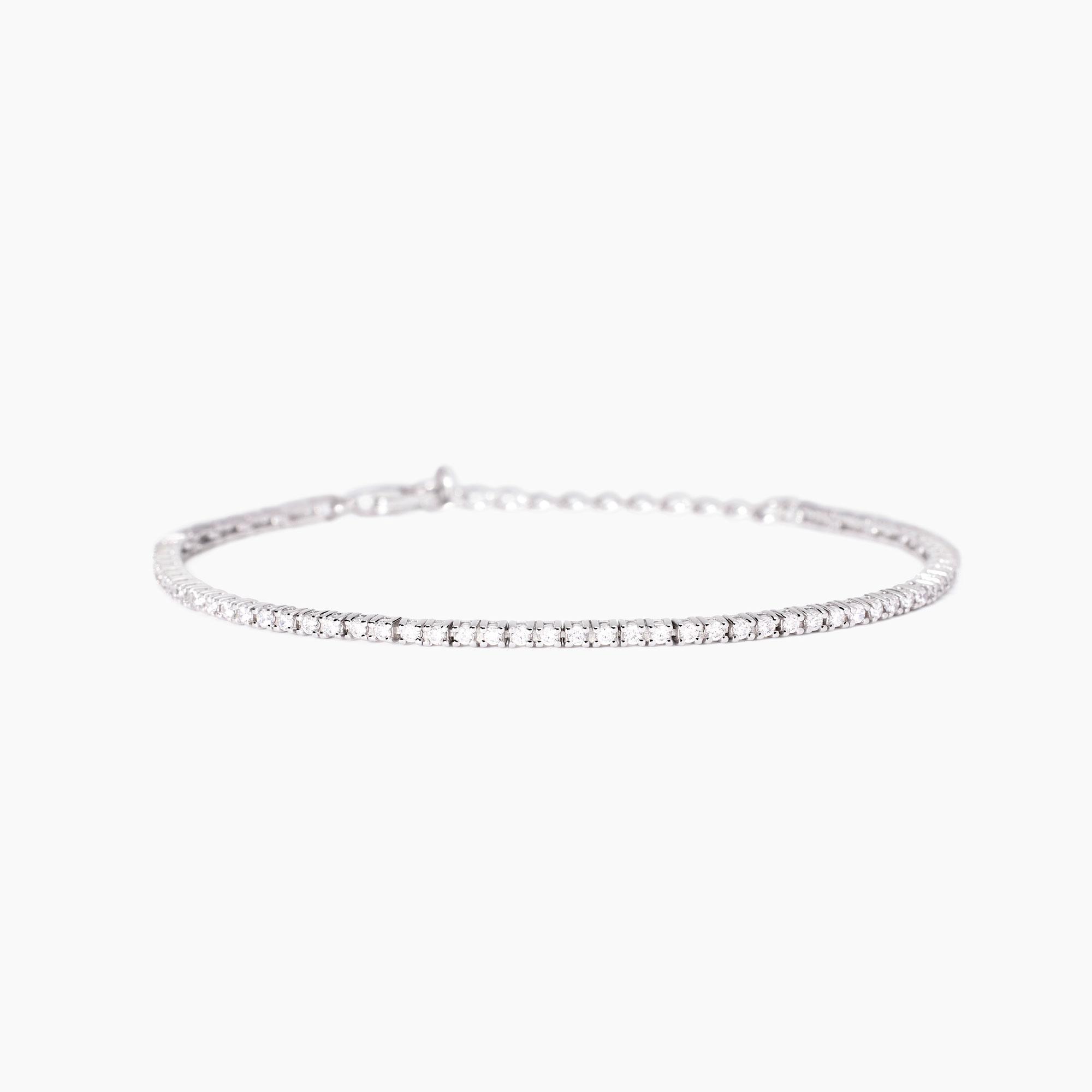 Bracciale tennis regolabile da donna in argento rodiato con zirconi.
