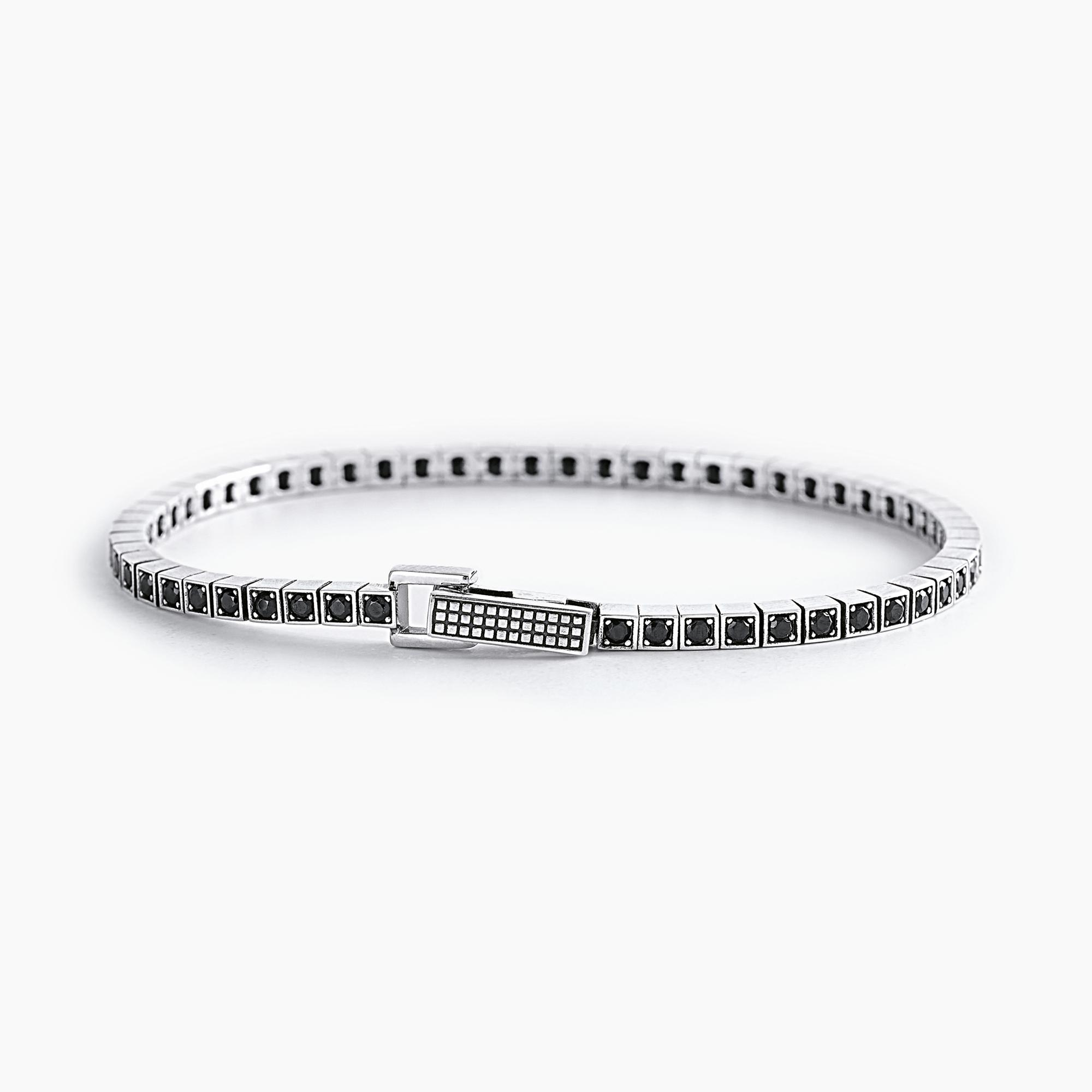 Bracciale tennis in argento brunito con zirconi neri.