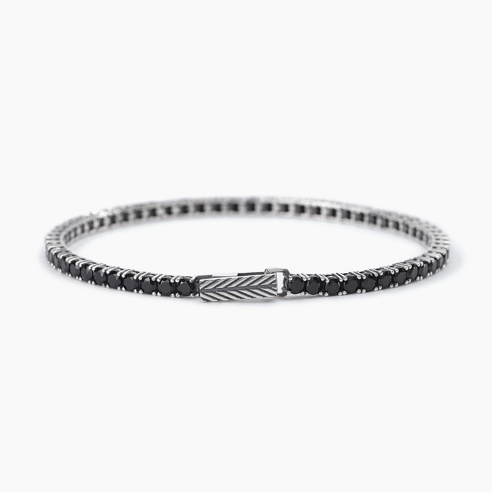 Bracciale tennis da uomo in argento brunito con zirconi neri.