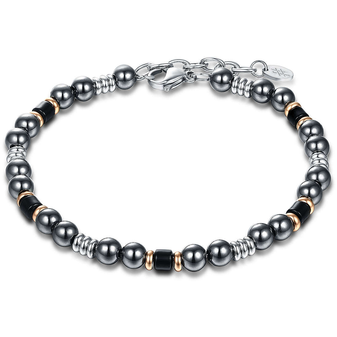 Bracciale Da Uomo Di Brand Della Collezione Fierce. Bracciale Ematite E Anellini Della Lunghezza Di 19 Cm + 3 Di Estensione. Gioiello Con Chiusura A Moschettone. La Referenza È 54Br023
