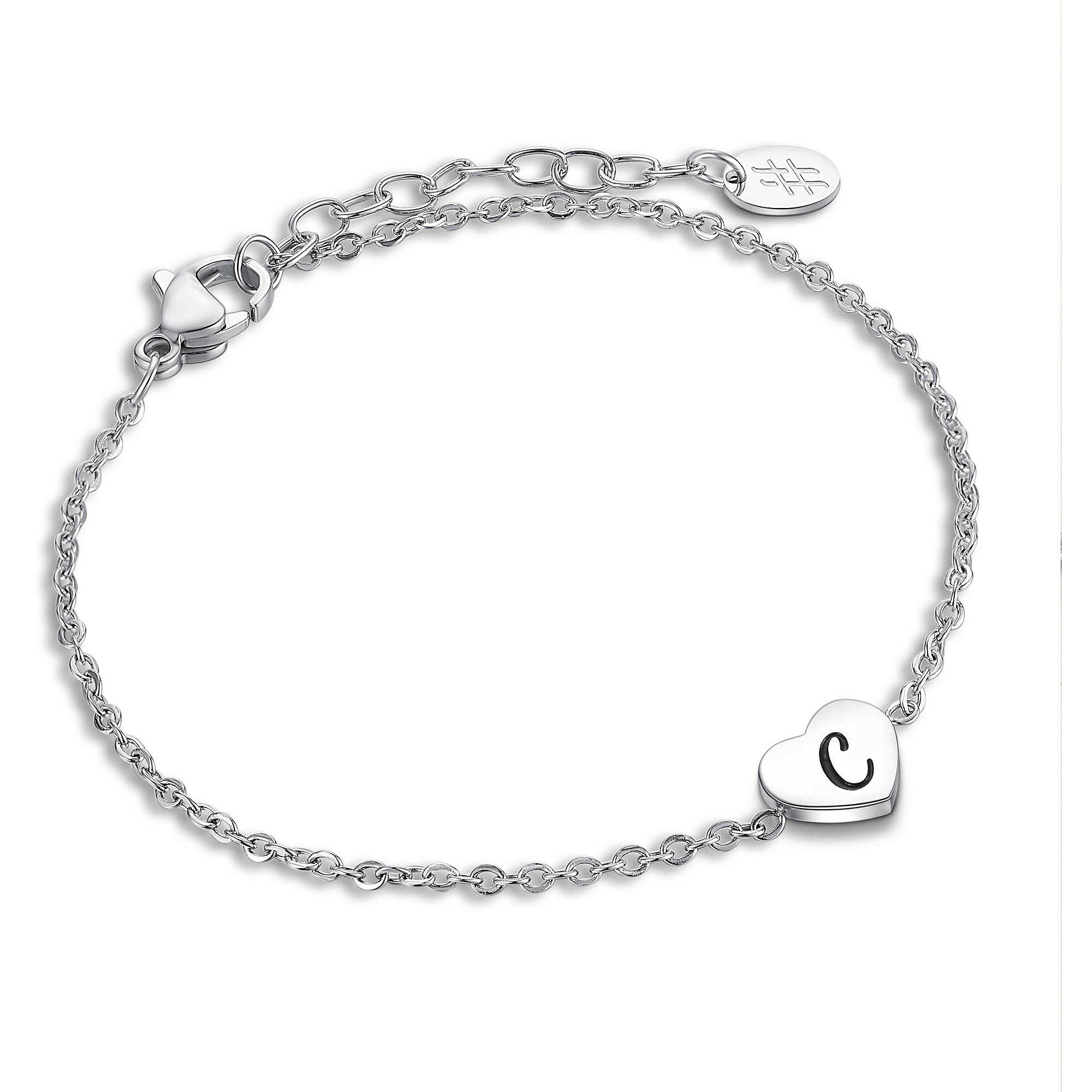 • Bracciale con Catena e Cuore Centrale con Incisa la Lettera C