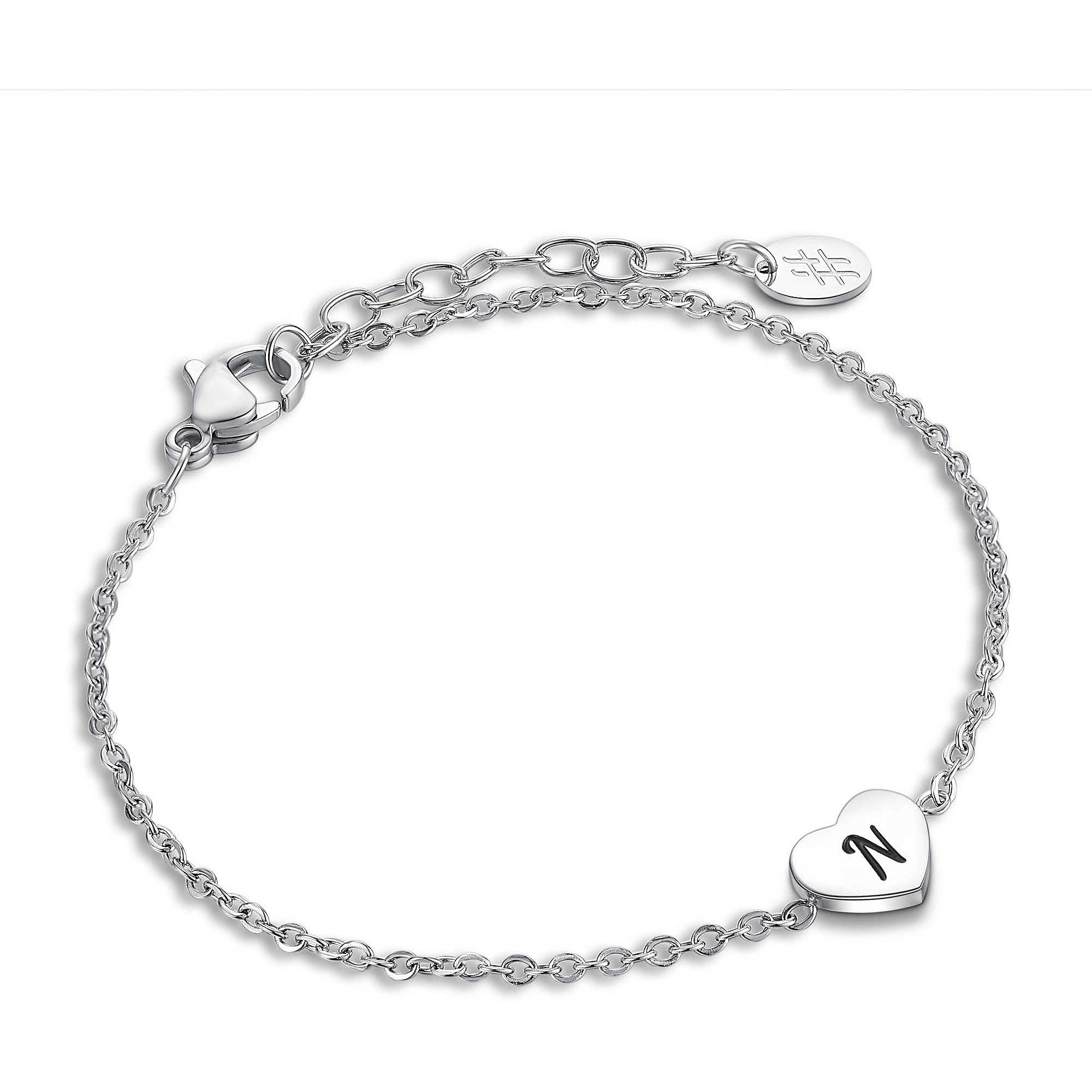 • Bracciale con Catena e Cuore Centrale con Incisa la Lettera N