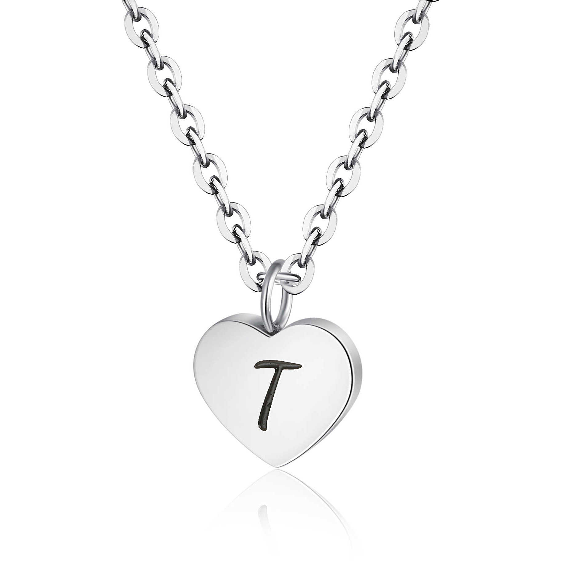 • Ciondolo Pendente a Forma di Cuore con incisa Lettera T