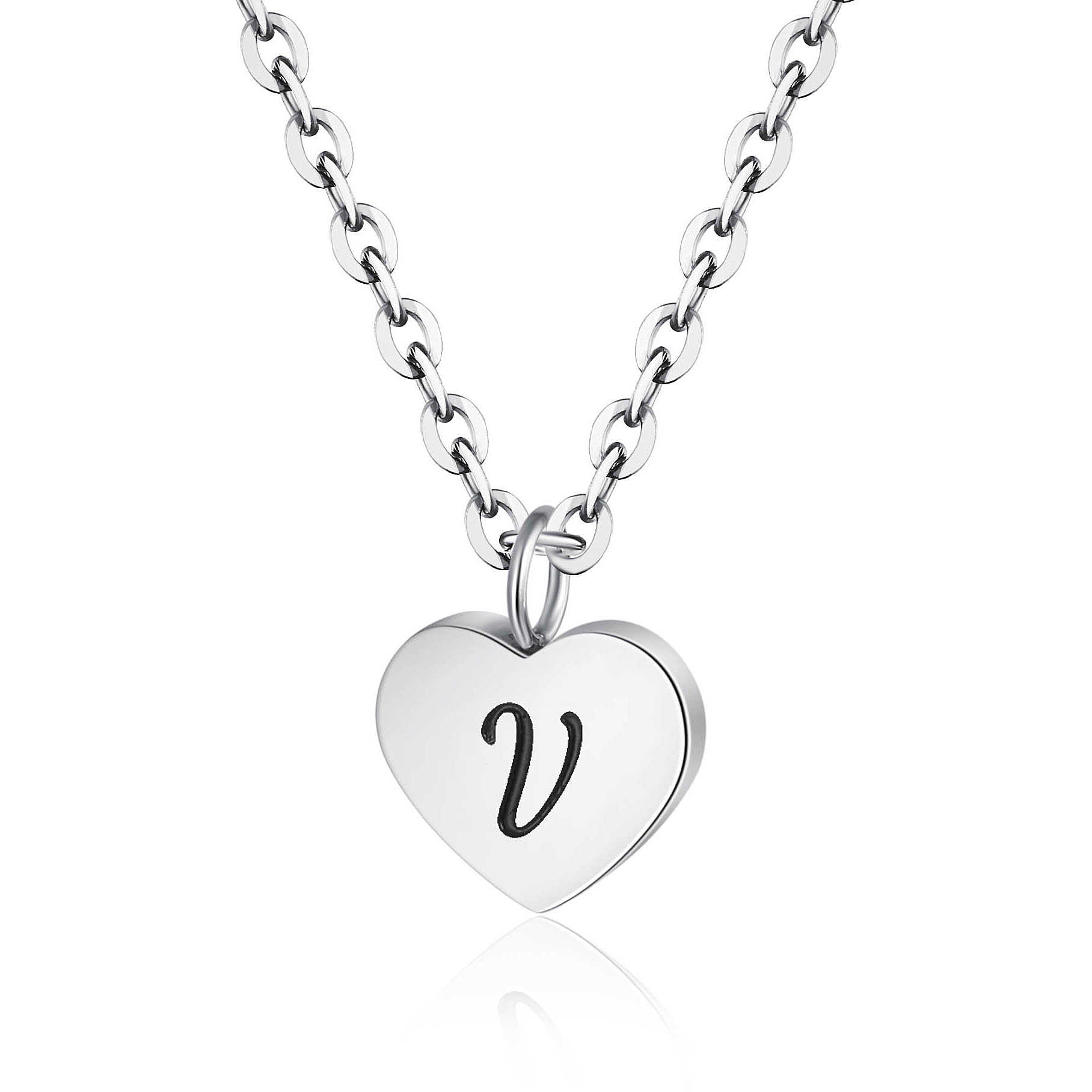 • Ciondolo Pendente a Forma di Cuore con incisa Lettera V