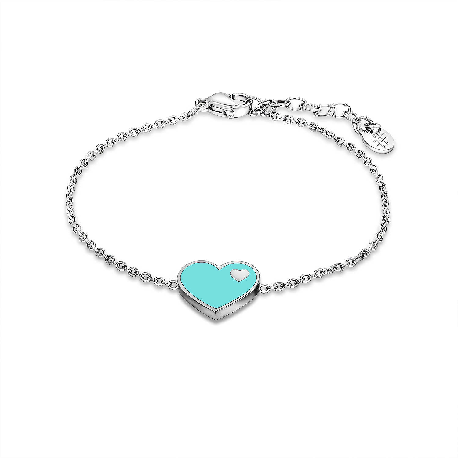 • Bracciale con Catena della Lunghezza di 16+3cm e Cuore Smaltato Verde del Diamentro di 12mm