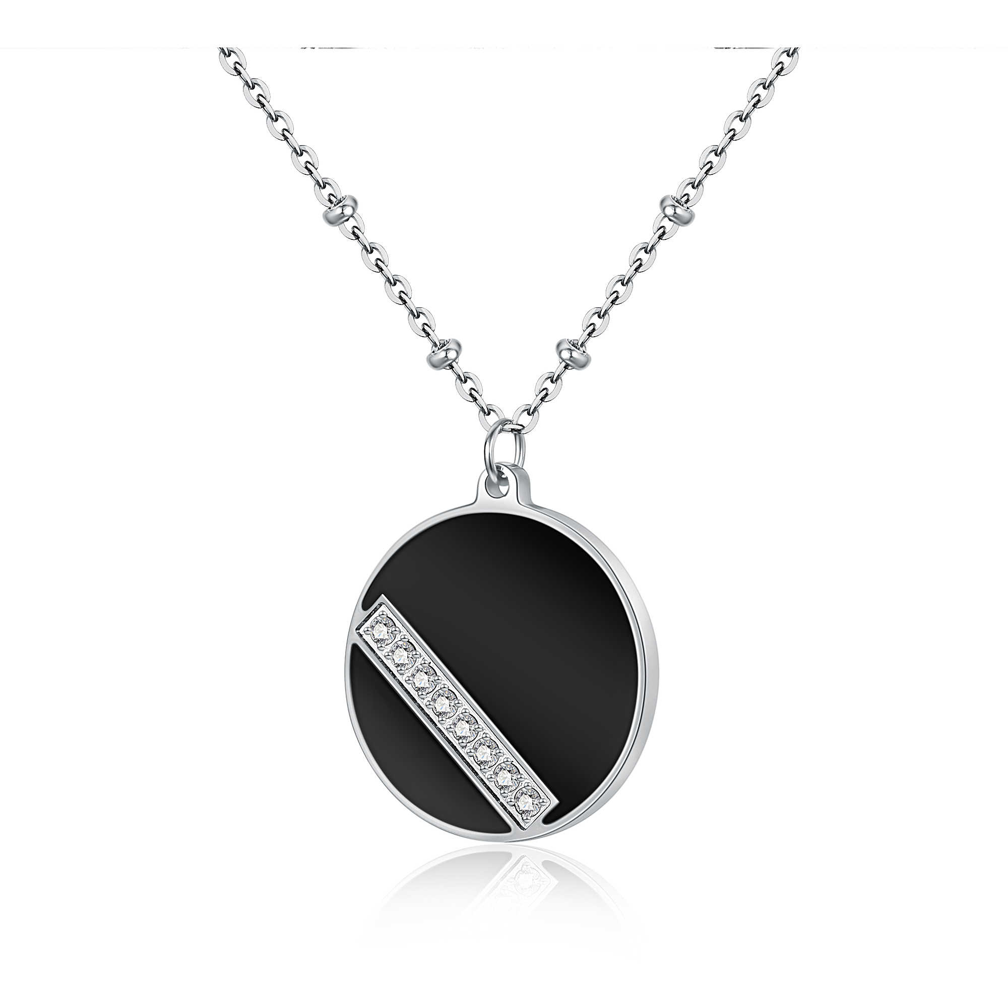• Collana Tramezzata Con Placca Neroùa e Cristalli Bianchi Pendente