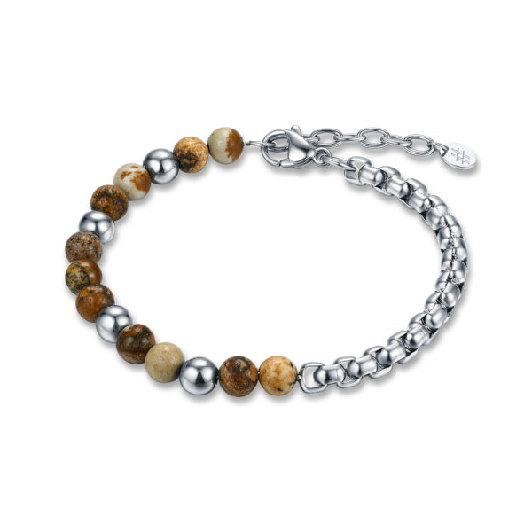 • Bracciale Metà Catena e Metà con Pietre Dure Marroni e Argento
