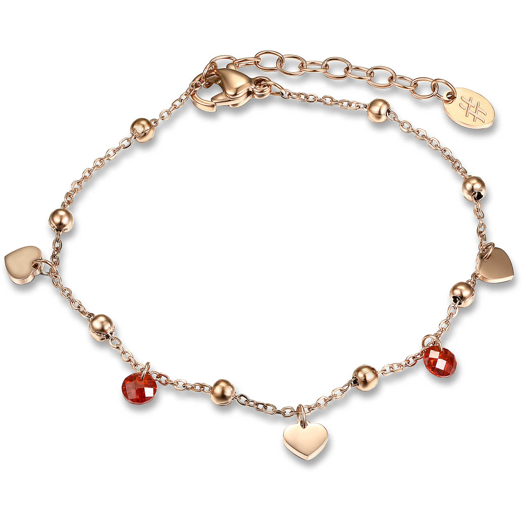 • Catena Tramezzata con Cuoricini e Cristalli Bronzo Pendenti
