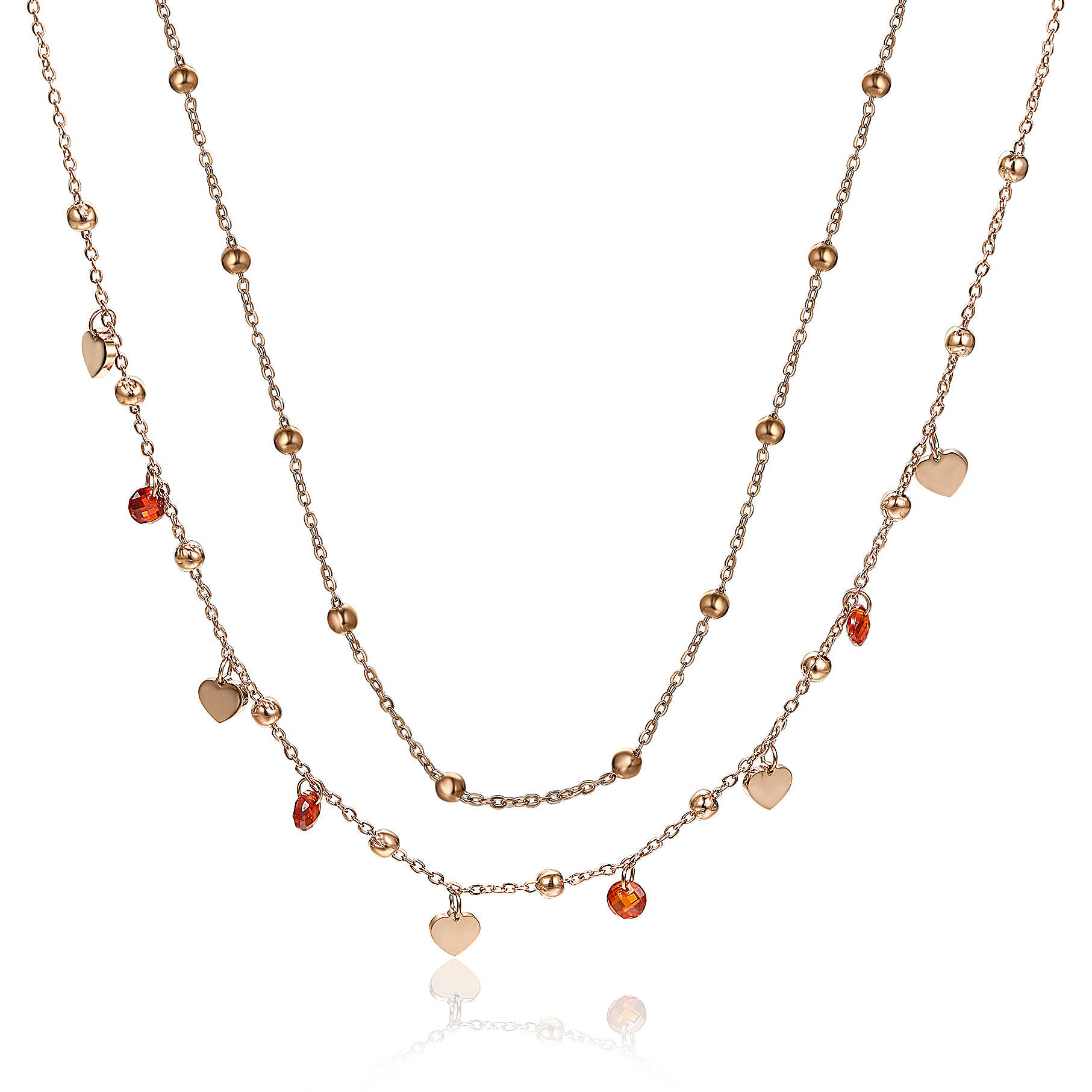 • Catena Doppia Tramezzata con Cuoricini e Cristalli Bronzo Pendenti