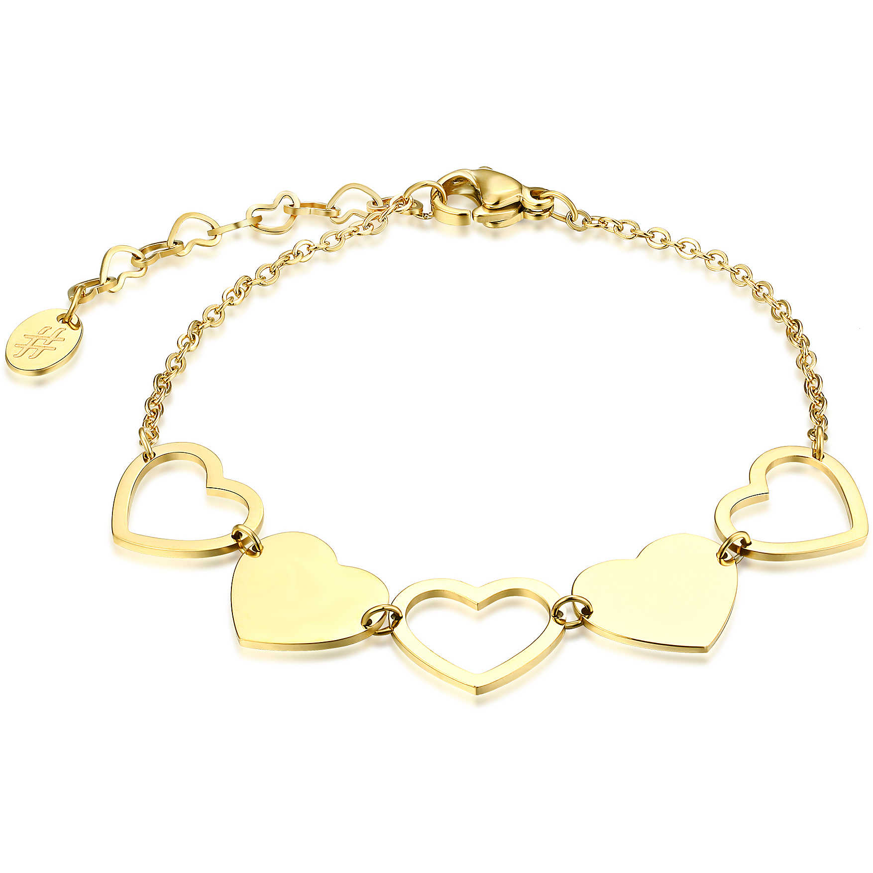 Bracciale Da Donna Della Collezione Good Feeling Di Brand. Bracciale Realizzato In Acciaio Ipoallergenico Con 5 Cuori In Pvd Oro. Colore Bracciale: Oro. La Chiusura È Con Moschettone. La Referenza È 03Br022G.