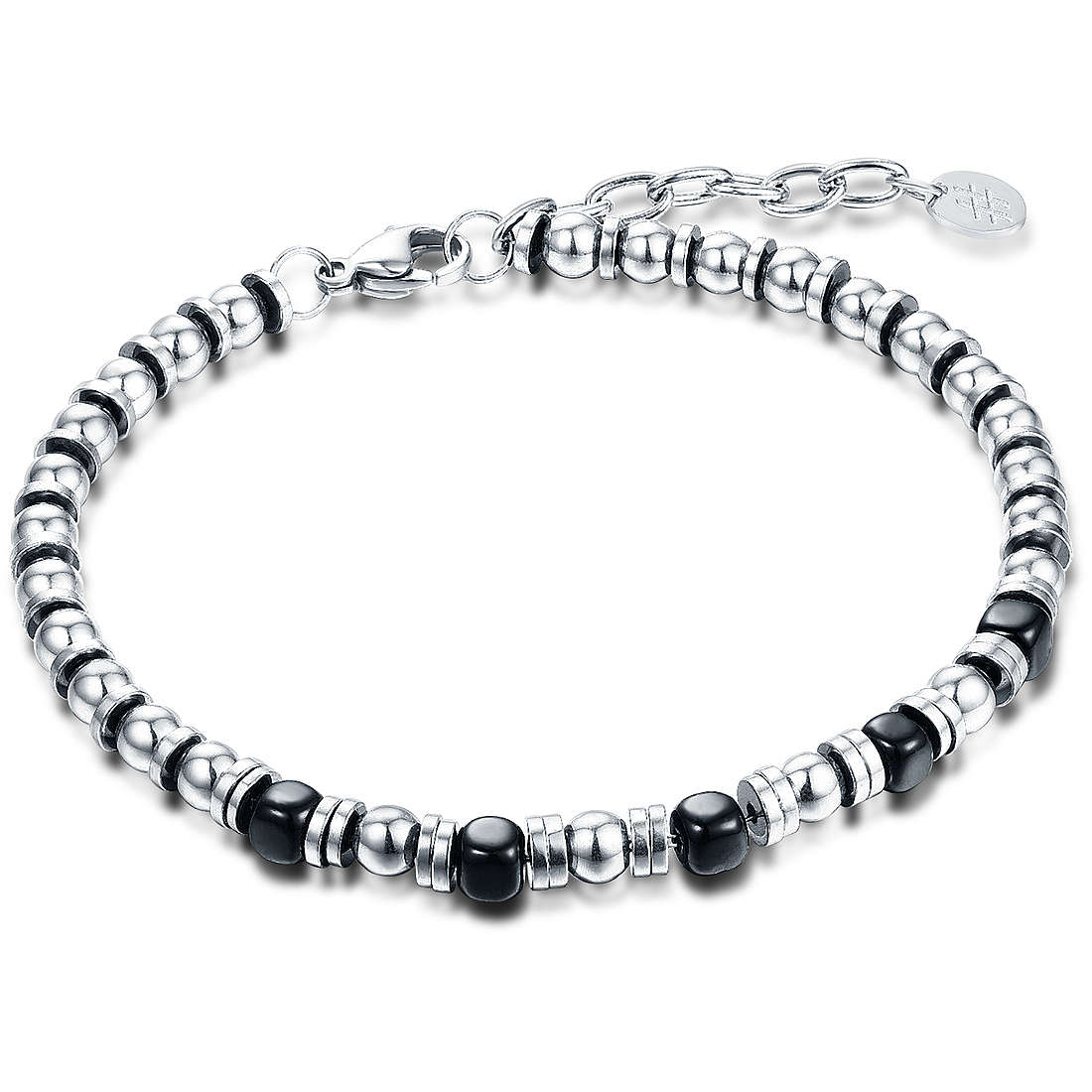 - Bracciale Acciaio E Cubi Neri Della Lunghezza Di 19 Cm + 3 Di Estensione.