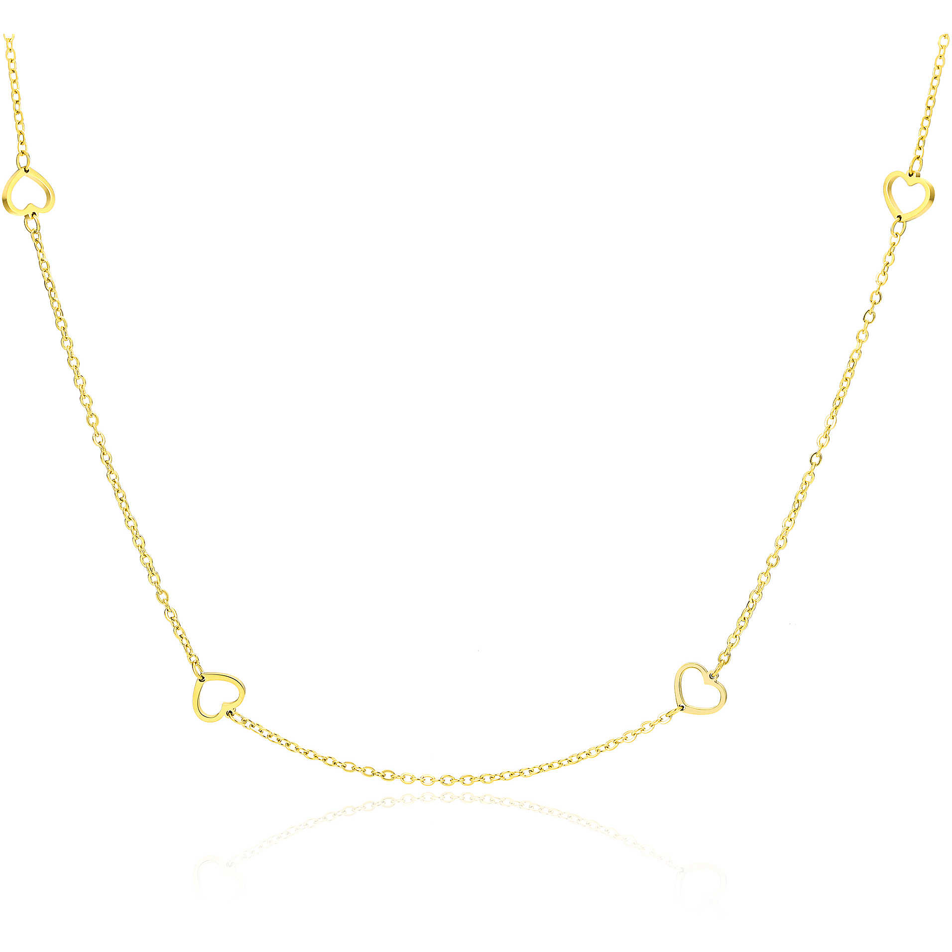 Collana Da Donna Della Collezione Good Feeling Di Brand. Collana Realizzata In Acciaio Ipoallergenico Con 8 Cuori In Pvd Oro. Colore Collana: Oro. Dimensioni: 80 Cm. La Chiusura È Con Moschettone. La Referenza È 03Nk019G.