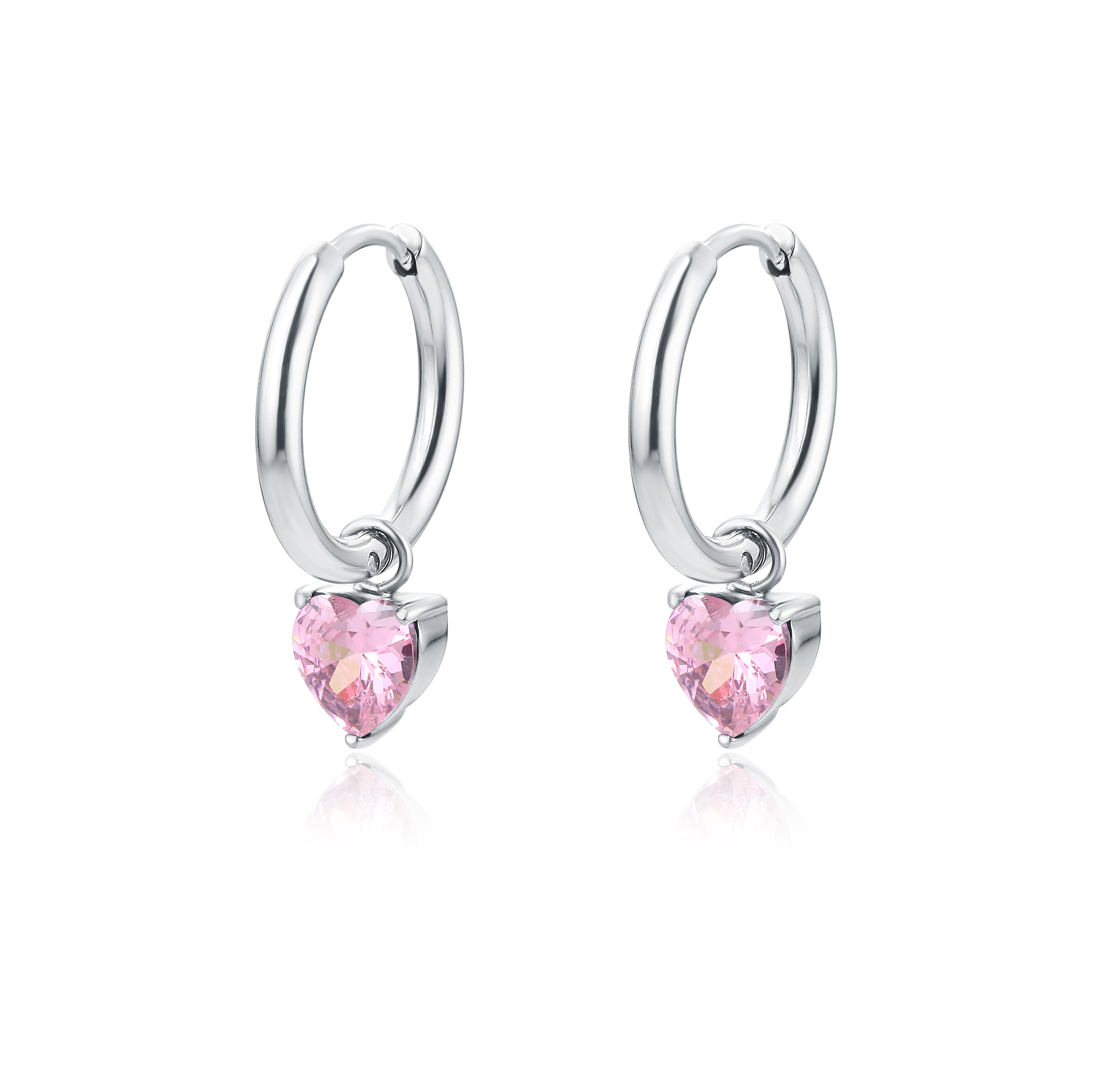 Coppia di orecchini a cerchio con pendente di cristallo a forma di cuore dimensione 6 mm x 6 mm.