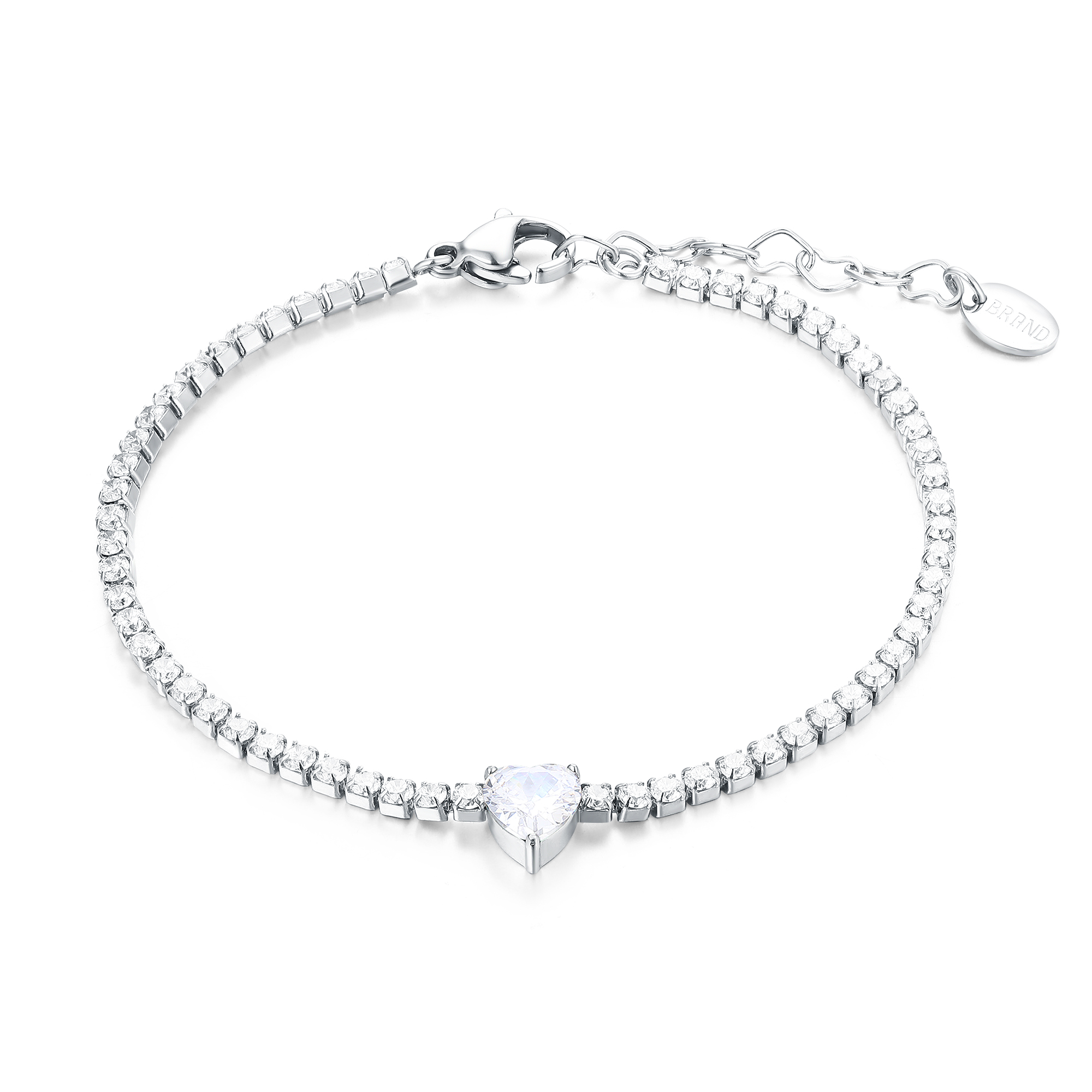 Bracciale tennis 2mm con cristallo a forma di cuore bianco.