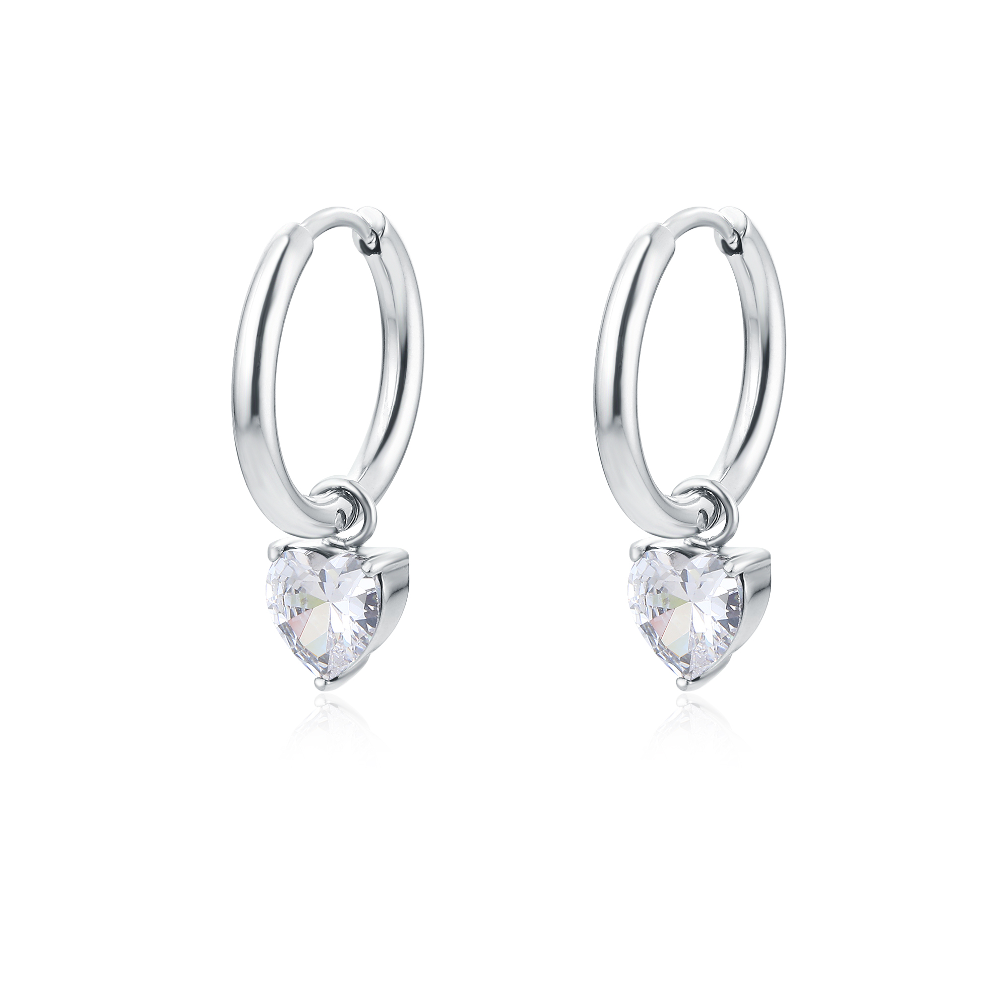 Coppia di orecchini a cerchio con pendente di cristallo a forma di cuore  dimensione 6 mm x 6 mm.