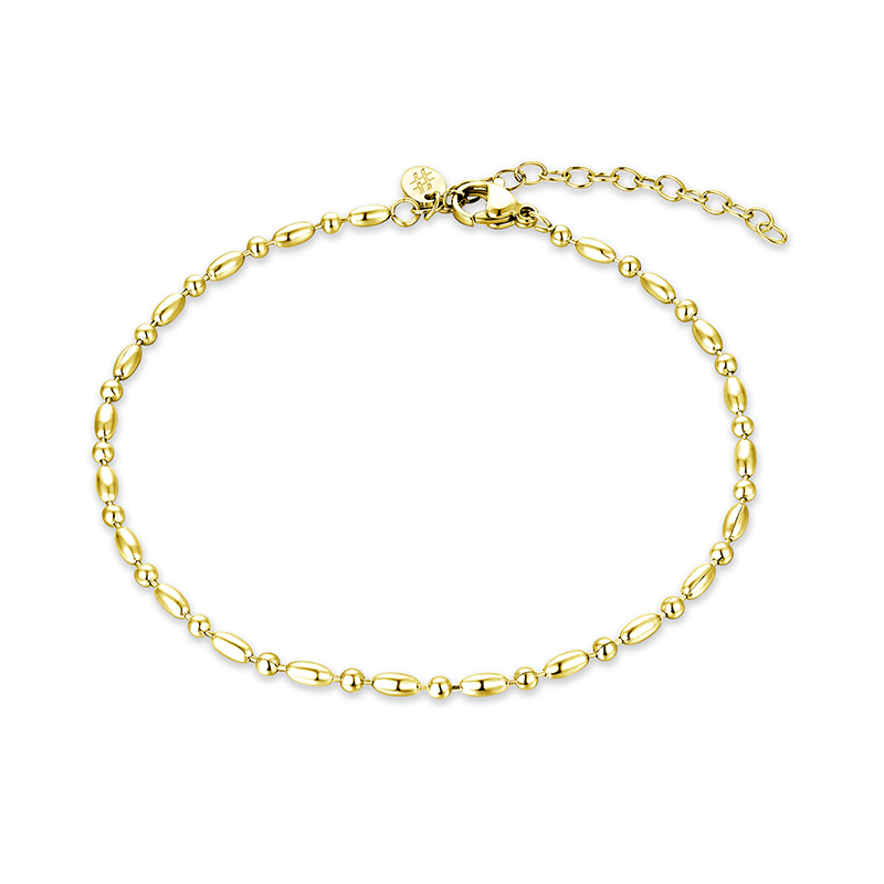 Cavigliera riso da donna della collezione Calypso di Brand Gioielli, in acciaio 316L dorato con lunghezza 21cm+5cm di estensione. Gioiello con due anni di garanzia ufficiale Brand Gioielli.