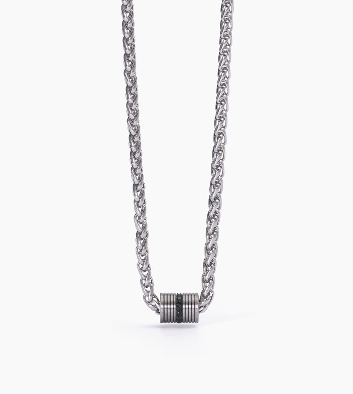 Collana in acciaio 316L con catena spiga larghezza 3.5 mm ed inserto con cristalli neri da 1.50 mm, lunghezza 50 cm